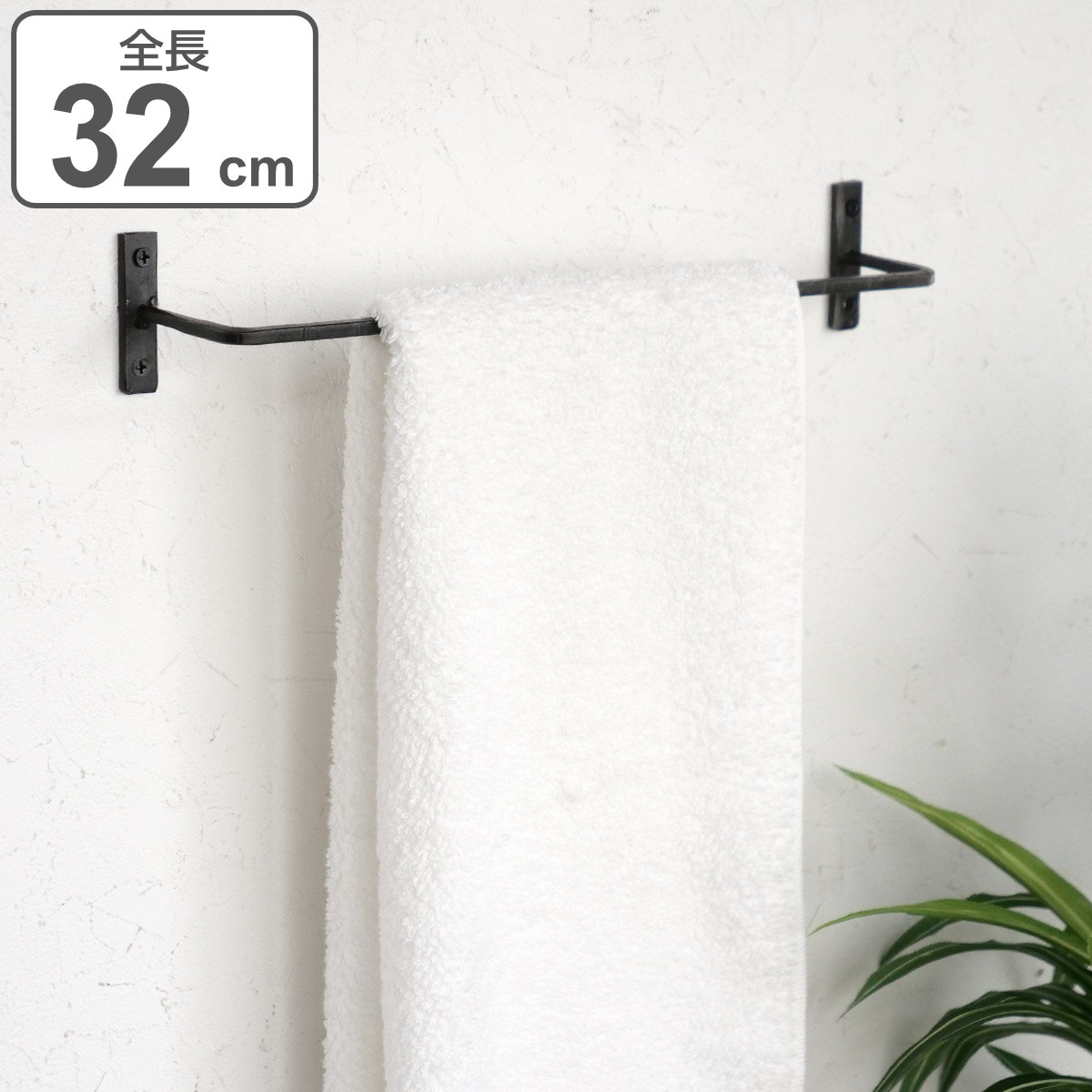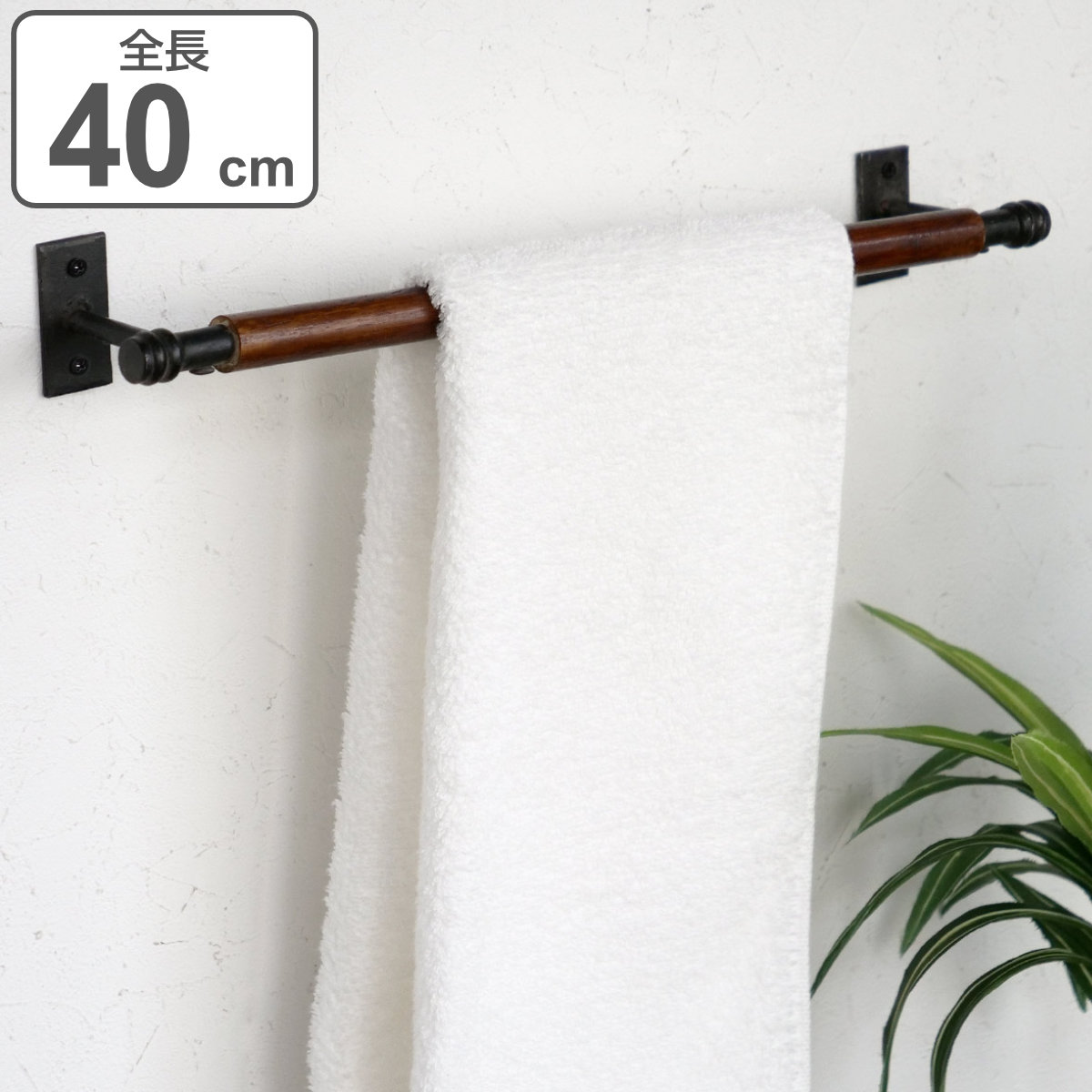タオルバー アイアン ウッドバータオルハンガー 全長40cm ( タオルハンガー 壁付け タオル掛け 天然木 )