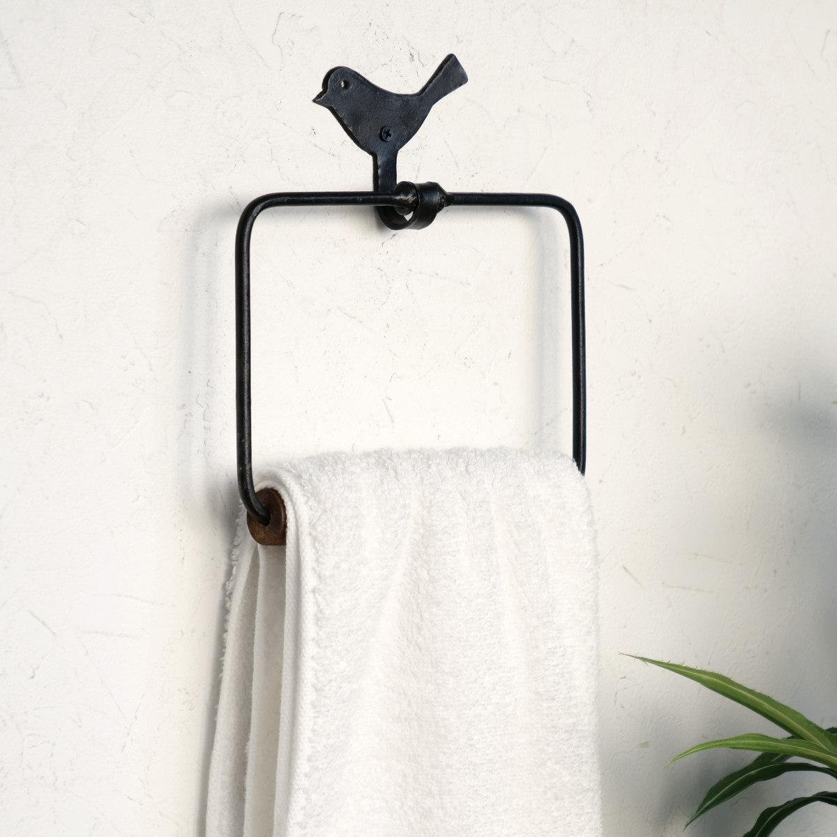 タオルリング アイアン スクエアタオルハンガー バード ( タオルハンガー 壁付け タオル掛け 天然木 )
