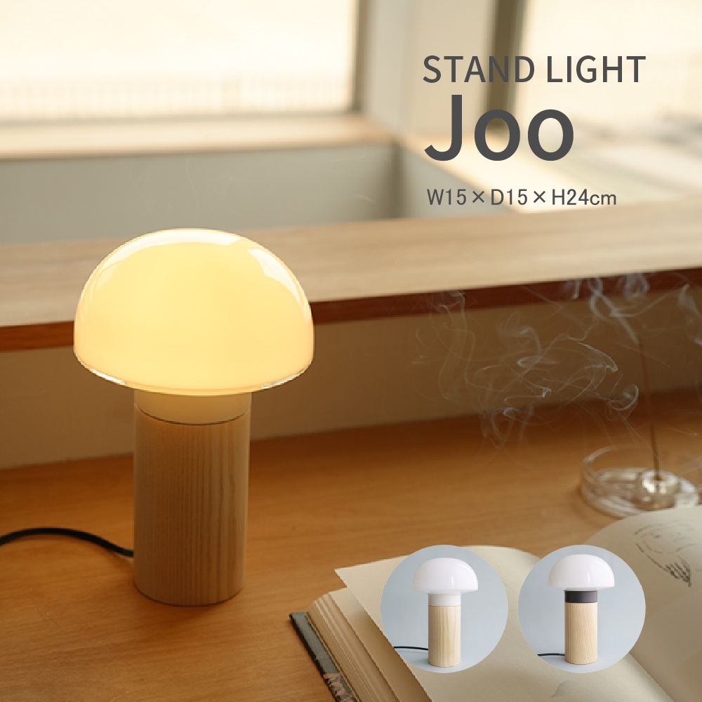 スタンドライト Joo<br>ホワイト / グレー<br><br>最小限のデザインで仕上げられた半球型のあかり。<br>フォルムの中に僅かな傾斜を持たせ…