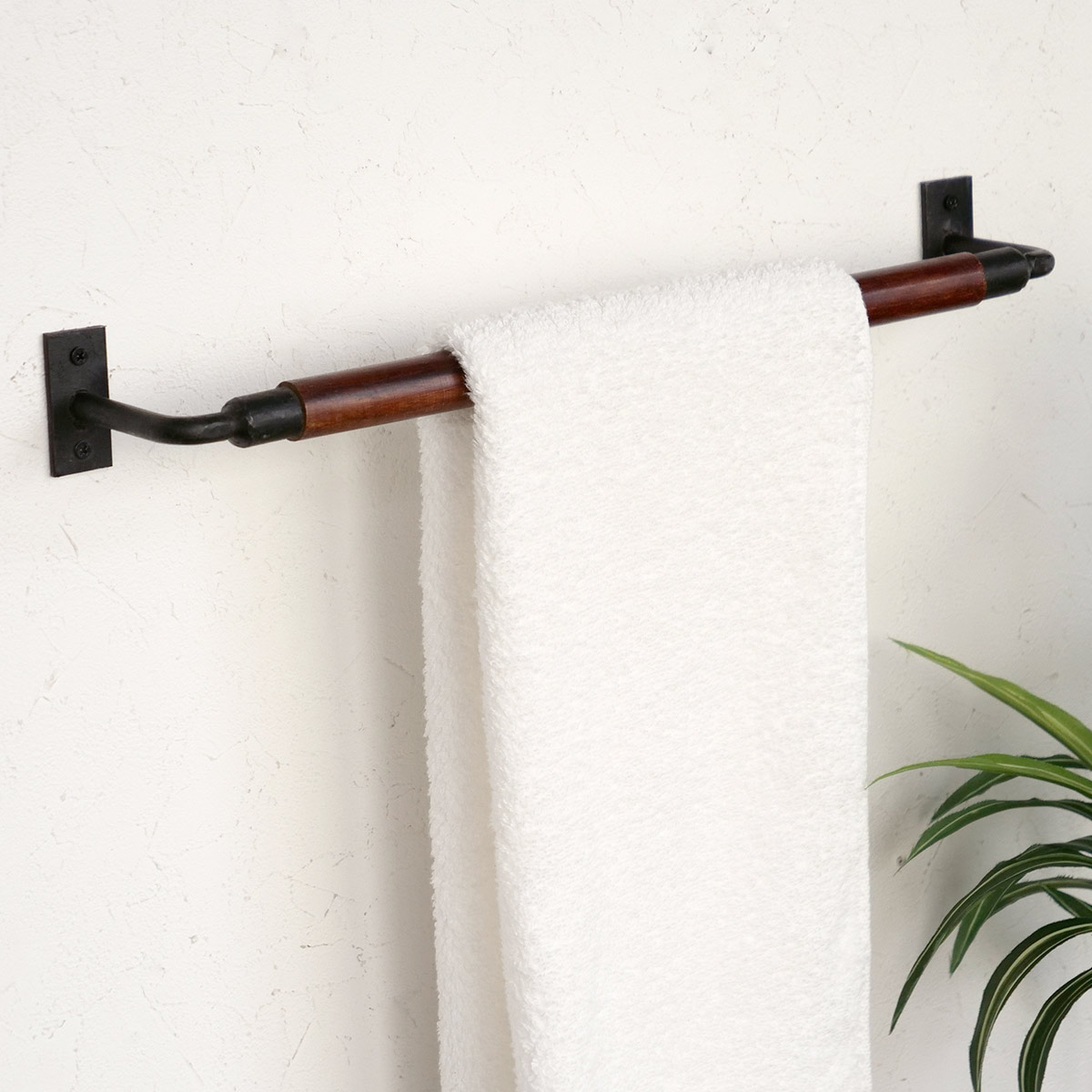 タオルバー アイアン ウッドバータオルハンガー 全長43.5cm ( タオルハンガー 壁付け タオル掛け 天然木 )